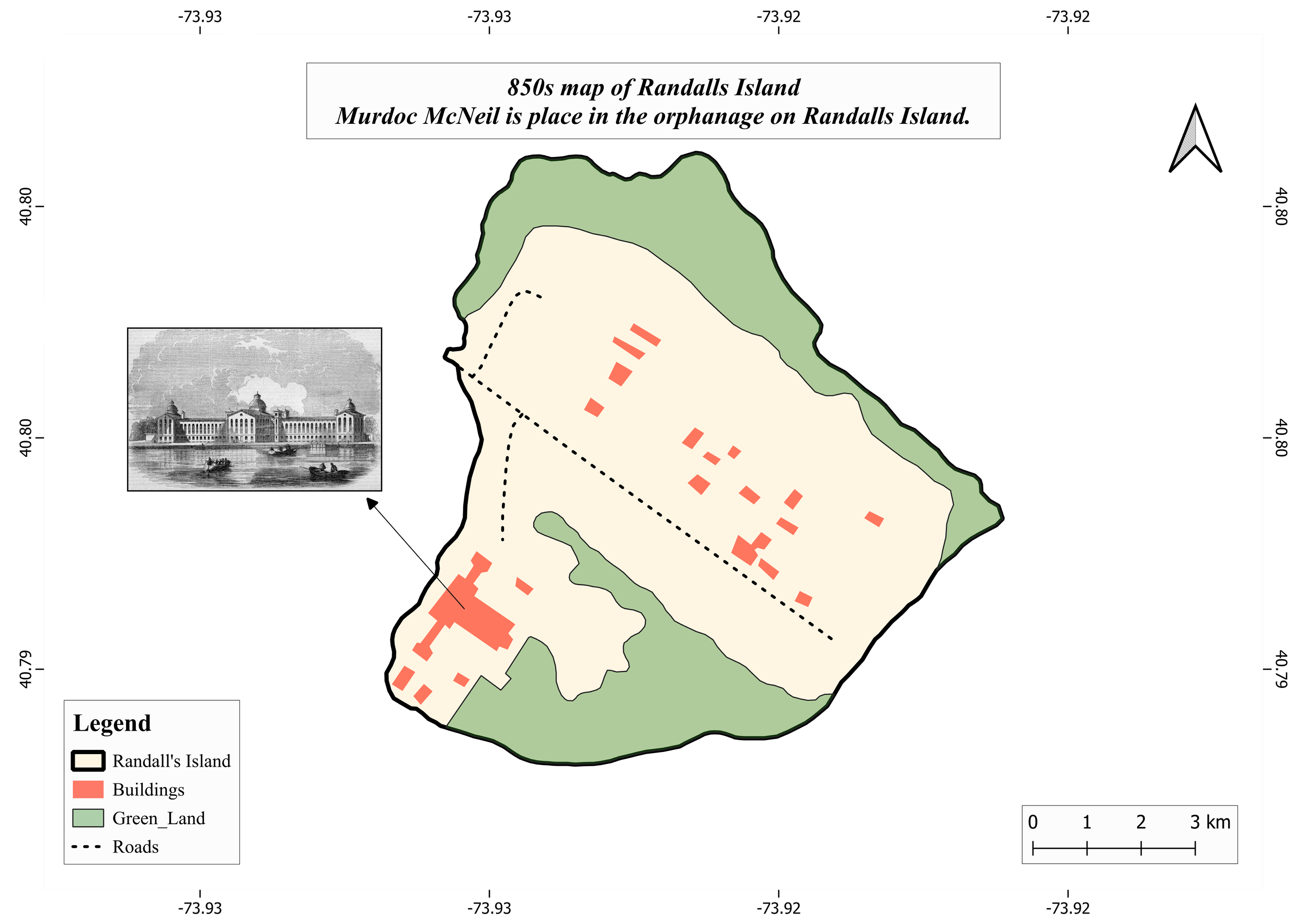 Map 4. 1850s Map of Randall’s Island: Murdoch McNeil Is Placed in the Orphanage on Randall’s Island (Chapter IV)