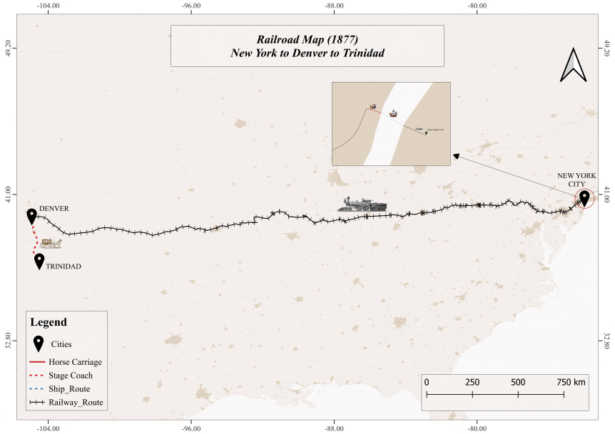 Map 5. Railroad Map (1877): The McNeils’ Westward Journey from New York to Denver (Chapter X)